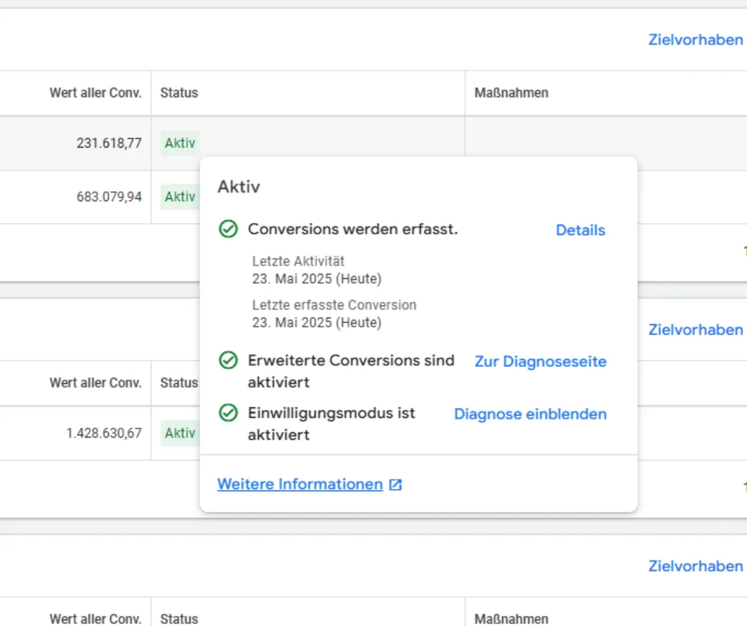 Wir setzen Google Consent Mode v2 um, um Googles neue Anforderungen zu erfüllen. Mit Erweiterten Conversions ermöglichen wir präzises, datenschutzkonformes Tracking von Leads und Käufen und steigern so die Performance deiner Kampagnen deutlich.